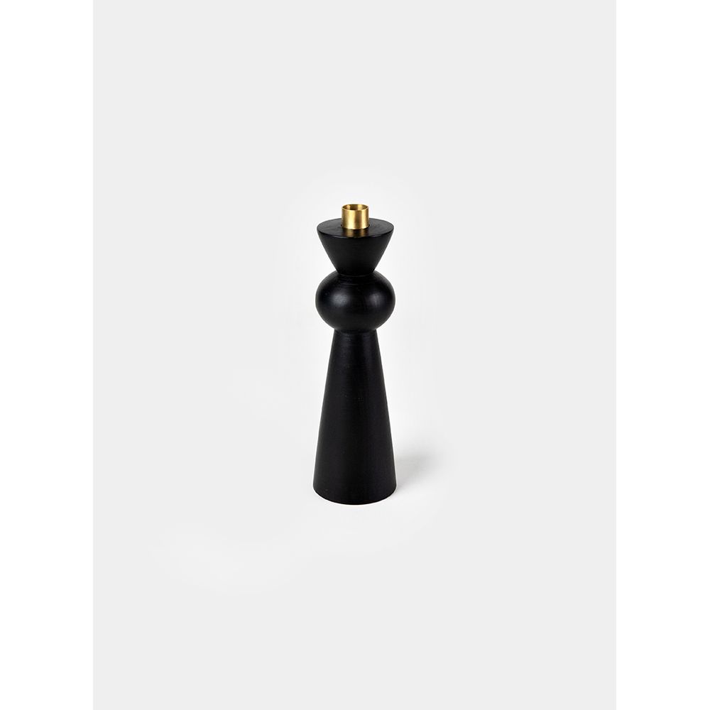 | Descrição do Produto | Este castiçal de uma vela é confeccionado manualmente em torno, utilizando madeira de alta qualidade e acabamento ebanizado, que confere uma tonalidade preta profunda sem ocultar os veios naturais da madeira. O suporte para a vela é feito em latão, proporcionando um contraste elegante e sofisticado. Disponível em três alturas — P (20 cm), M (25 cm) e G (30 cm) —, os castiçais podem ser utilizados individualmente ou em conjunto, criando uma composição harmônica e dinâmica na decoração de ambientes como salas de jantar, aparadores ou mesas de centro. Seu design atemporal e acabamento refinado adicionam um toque de elegância e estilo a qualquer espaço. |