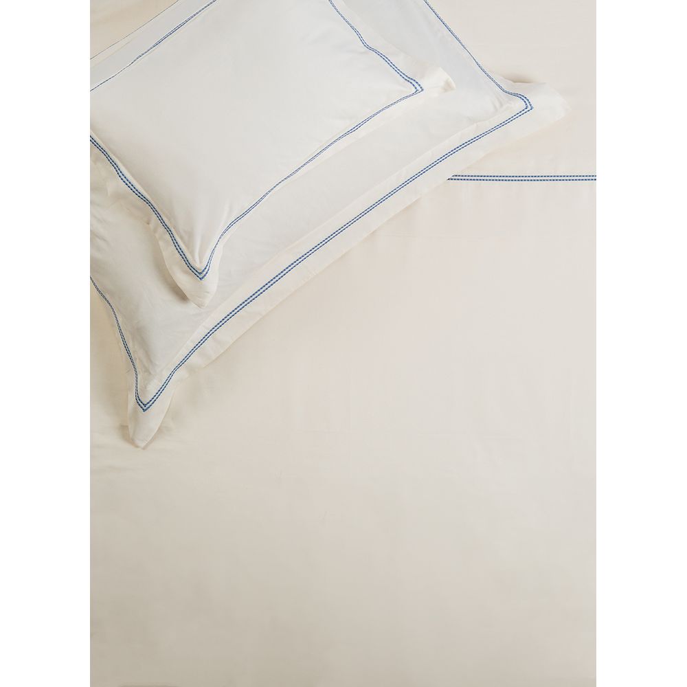 Jogo de lençol 400 fios bordado palitinho off white e azul
