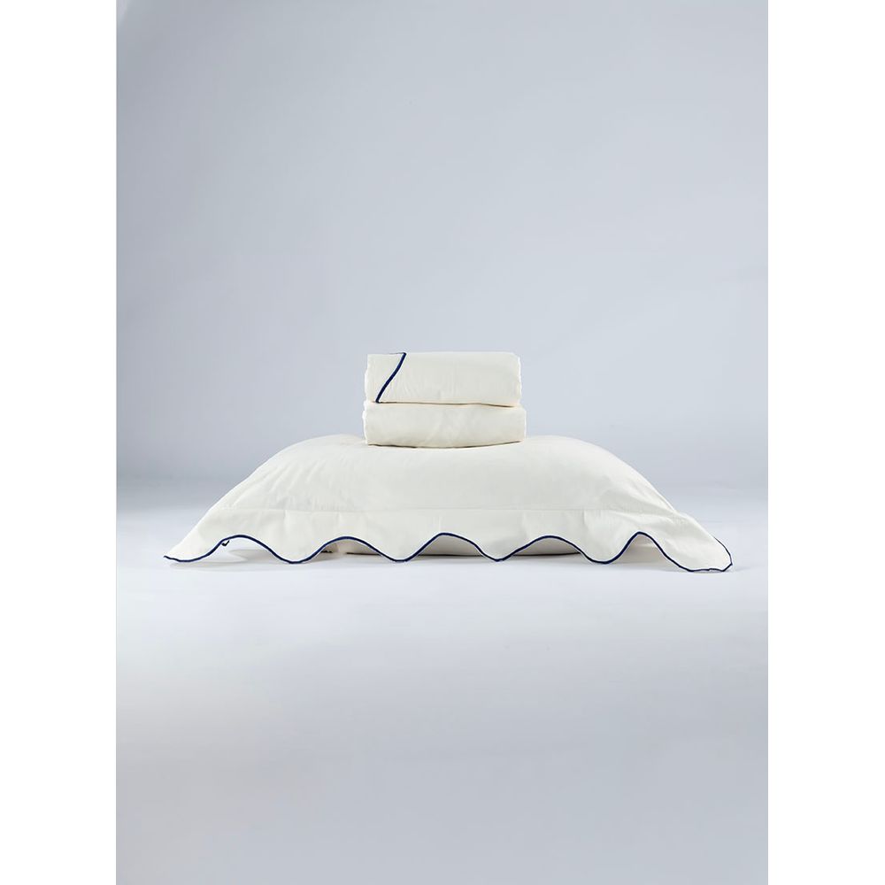Jogo de lençol 400 fios bordado palitinho off white e azul