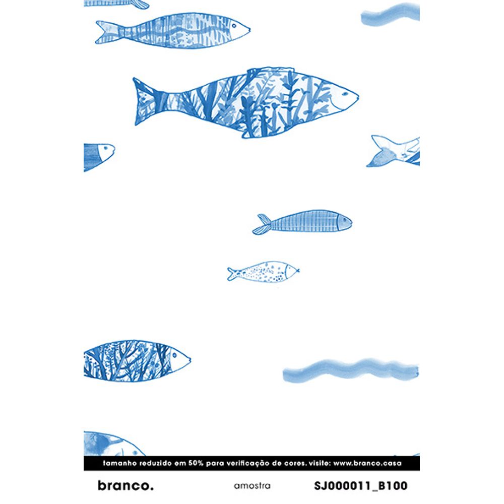 | Sobre | "Todos os peixes, exceto um, nadam na mesma direção. O movimento deles na água e das pinceladas das ondas criam sensação de fluidez. Ideal para quartos de crianças e outros ambientes serenos da casa", Sandra. |