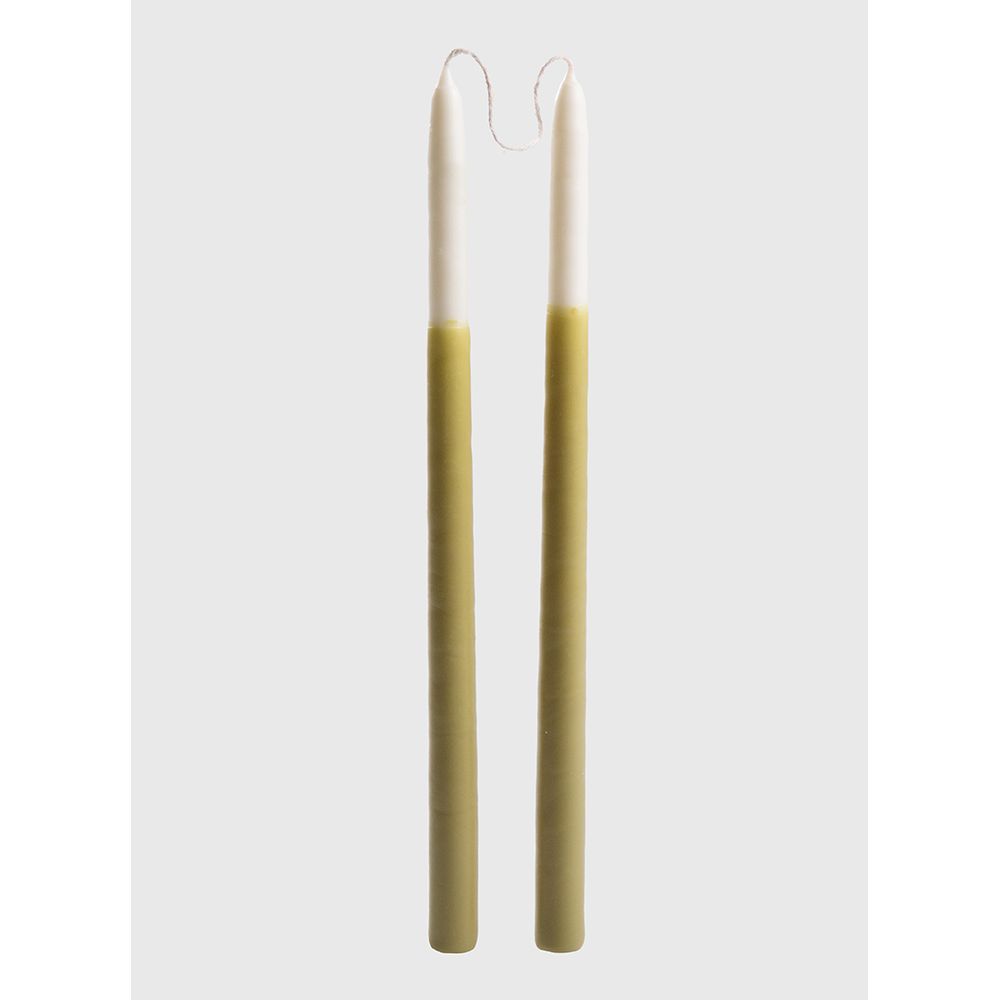Kit 8 Velas Bastão Bicolor Mostarda com Castiçais