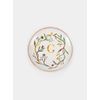 | Cuidados | Nossa coleção de pratos de porcelana com monograma é assinada pela artista Sandra Jávera. Cada peça traz uma inicial aplicada em ouro, conferindo identidade única e tornando-a um presente especial. O fundo branco realça o desenho floral delicado e destaca o filete dourado que contorna cada prato, resultando em uma peça elegante e de traços clássicos. Vendido individualmente, este prato alia praticidade para o uso diário com o charme de um item colecionável. |