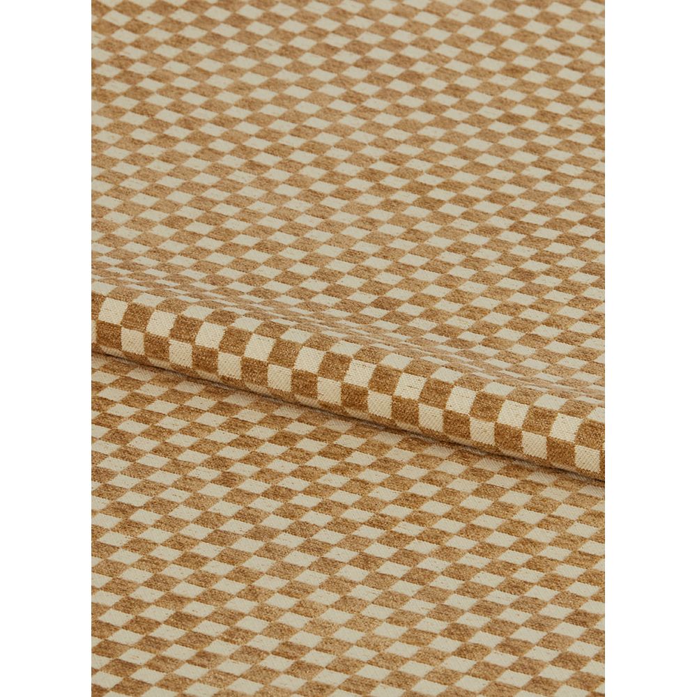 | Sobre | Tecido jacquard de algodão feito em nossa base RITA. É composto também por fios de chenile produzidos em território brasileiro que formam a estampa xadrez. A gramatura mais alta torna esse tecido ideal para a aplicação em estofados, sofás, poltronas e cabeceira de cama. |