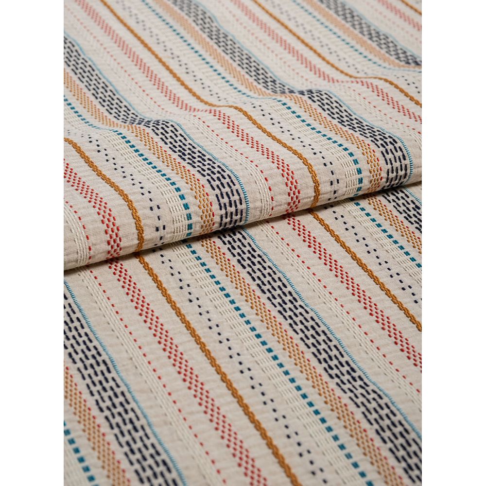 | Sobre | A coleção Aventuras Imaginárias é convite para um passeio lúdico e impresível, é só chegar e brincar com a gente! Isabel é um tecido listrado com bordados de linhas em várias formas que percorre toda sua extensão. Versátil e divertido, transforma o ambiente deixando-o mais alegre e leve. |