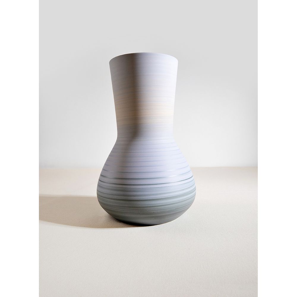 | Descrição do Produto | Vaso de cerâmica de 29 × 19 × 19 cm, com volumetria generosa e superfície marcada por anéis finos que criam textura. Os tons de azul e verde formam um degradê orgânico, ideal para composições contemporâneas. Peso: 1255g |